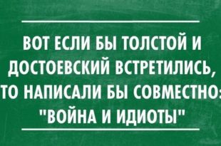 Очень актуально именно в наши дни: Если бы Толстой и Достоевский встретились, то написали бы совместно: «Война и идиоты»