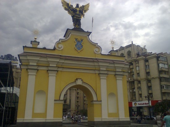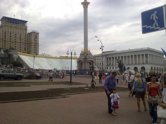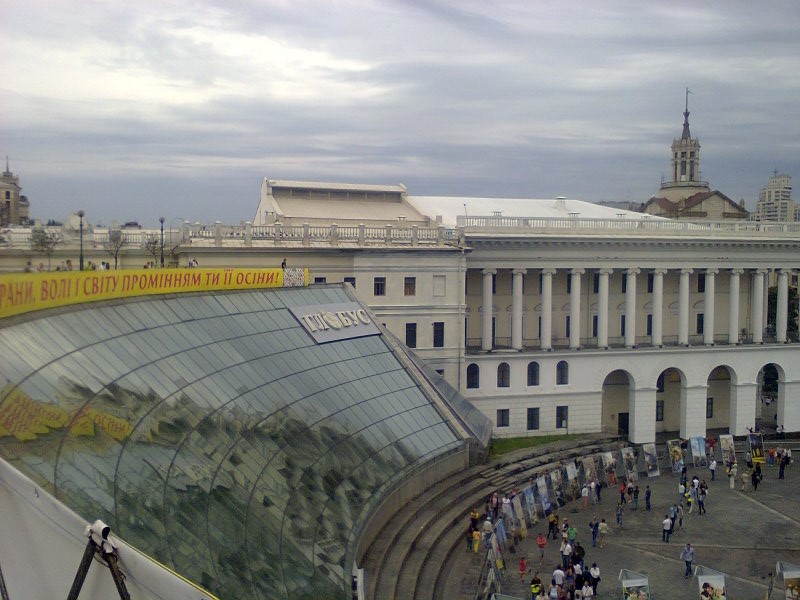Это угол главпочтамта — место, где под стеклом сохранили кусочек памяти о Помаранчевой революции. Здесь же пока без стекла можно увидеть еще свежие записи о Революции гидности.
